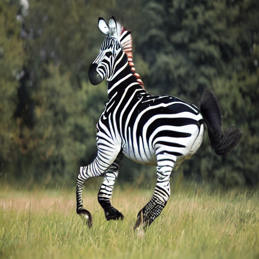 Using the Stable Diffusion Inpainting model, I applied my edit with prompts describing what I wanted ("A zebra") and what I didn't want ("horse").